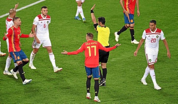 Pero su clasificación deja muchas dudas. Y es que una vez que ya estaban eliminados, los marroquíes cambiaron su forma de jugar, formando una línea de seis jugadores por delante del guardameta y parando el juego con constantes faltas –hubo un tremendo roce entre Ramos y Amrabat y una falta peligrosa de Piqué a Boutaib que lo pudo lesionar–. Todo esto hizo que España no desplegara su juego habitual durante los primeros minutos del encuentro.