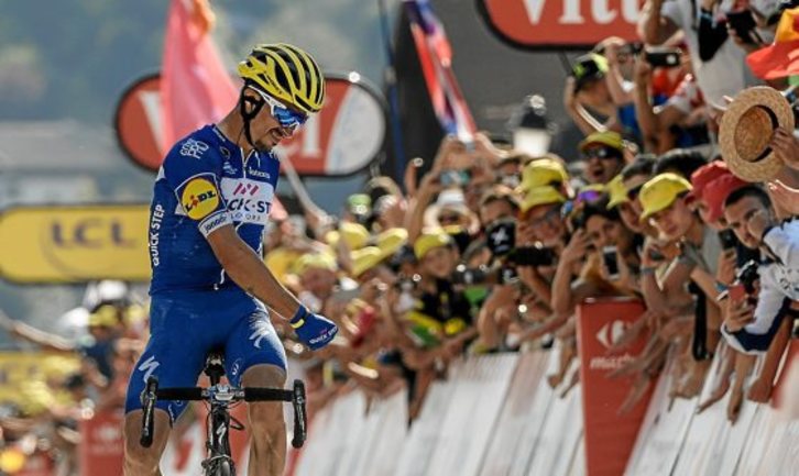 Julian Alaphilippe logró ayer su primera victoria en el Tour al ser el más fuerte de la escapada de 21 corredores formada en el inicio de la etapa y llegar a la meta de Le Grand Bornand con 1:34 sobre Ion Izagirre, que sin tener su mejor día fue capaz de ser segundo. Greg van Avermaet también se metió en la escapada para mantener el liderato y llegó por delante de un primer grupo en el que no pudieron entrar algunos de los favoritos.