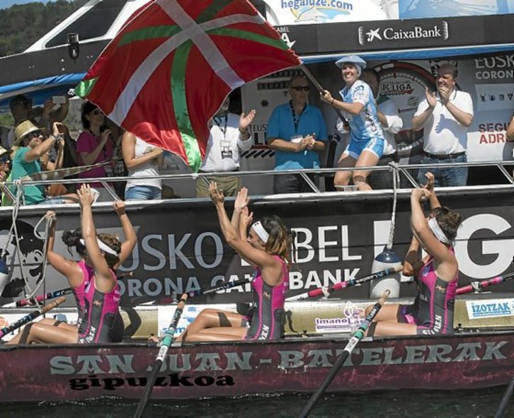 Tras haberse visto superadas por Arraun Lagunak y Orio en Ondarroa, las sanjuandarras saltaron al agua en Hondarribia dispuestas a aclarar todas las dudas, si es que hubiera alguna. A las pasaitarras les bastaba con terminar un puesto por detrás de Orio, ya que a falta de dos regatas para terminar la temporada, el número de banderas obtenidas les otorgaba el título incluso en caso de empate. En todo caso, «Batelerak» no dejó resquicio alguno a la duda. Ganó una regata más y se embolsó la Liga Euskotren por todo lo alto.