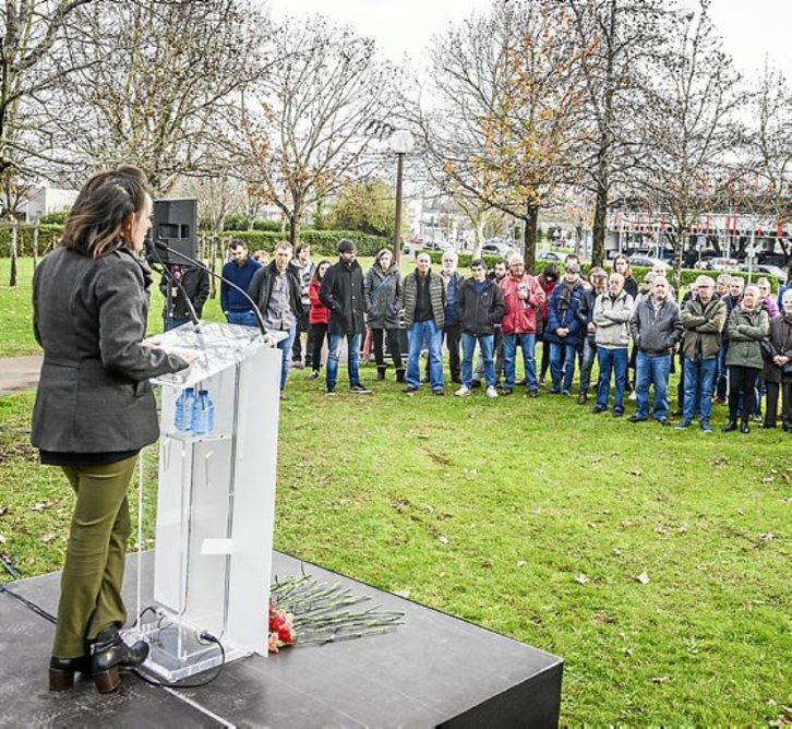 BVE talde paramilitarrak Jose Miguel Beñaran Ordeñana Argala hil zuenetik 40 urte, egunez egun, bete zirenean, ETA erakundeko ideologo eta ekintzailearen ekarpena gogoan izan zuten atzo goizean, Angeluko Dous-Bos parkean. Isabelle MIQUELESTORENA