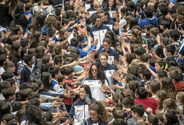 Las jugadoras blanquiazules, recientes y brillantes campeonas palparon el cariño de todo el herrialde tras su excelente logro deportivo.