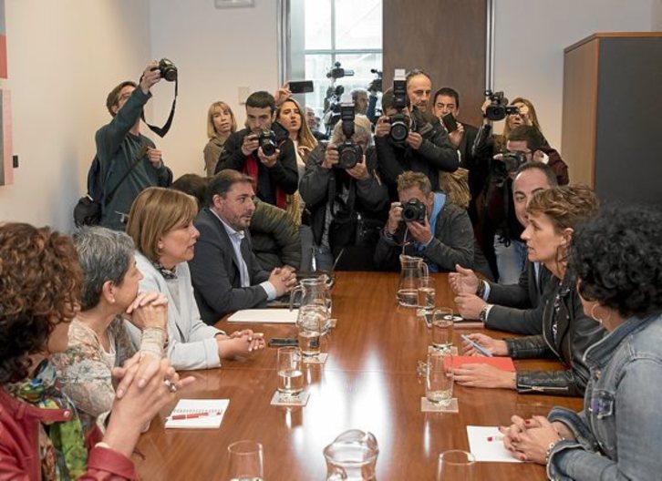 Dos horas antes de que el PSN y Geroa Bai se reunieran en el Parlamento, Bakartxo Ruiz compareció junto a los parlamentarios de EH Bildu (faltaba Miren Aranoa que se encuentra en Argentina en la visita que Sanfermines 78 está realizando) para lanzar un mensaje claro: «Es imposible configurar una alternativa a la derecha en Navarra sin hablar con EH Bildu».