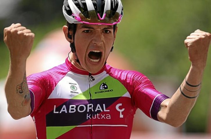 En Bidasoa se cayó en la primera etapa, en Nafarroa lo pasó mal con el calor, pero fue a más y estrenó su casillero en el Gervais: «Era otro de los objetivos, un gran test antes del campeonato para ver cómo estábamos. Soy especialista, pero ganar en una crono dura a Ibarguren, que está en un estado de forma espectacular, y Mujika, que anda mucho, me dio más confianza».