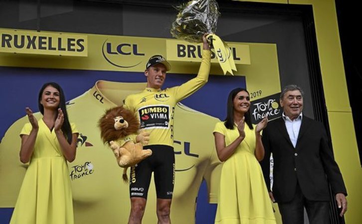Mike Teunissen (Jumbo) ganó ayer la primera etapa del Tour con salida y llegada en Bruselas tras asumir la responsabilidad de disputar la llegada tras la caída de su velocista Dylan Groenewegen e imponerse en los últimos metros en un apretado sprint a Peter Sagan.