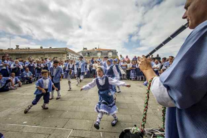 A la vuelta de la plaza, los blusas y las neskas se dispersaron por Alde Zaharra. Muchos cerraron allí la noche, aunque más de uno se acercó a las txosnas para ver los conciertos de Dupla y Zea Mays o a Los Fueros a ver la actuación de La M.O.D.A.; y alguno regresó a la plaza del Machete para escuchar a Joseba Tapia. A buen seguro que la mayoría marchó pronto a casa, porque hoy les espera un día intenso, sobre todo a quienes participen en el descenso de goitiberas, organizado por Los Alegríos. En cuatro años han logrado que sea un evento multitudinario, que ha traspasado fronteras. Este año participará un japones con una goitibera de bambú.