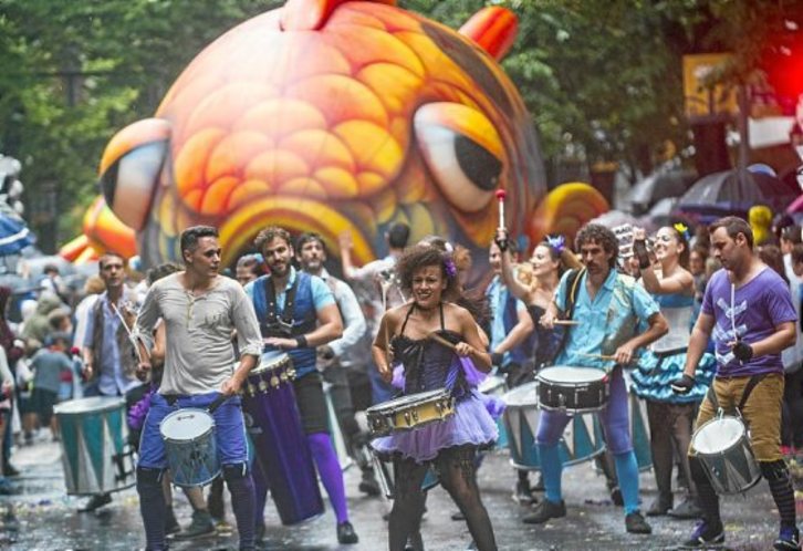 Ayer, comprobé que los arponeros siguen en nómina mientras sí intuí renovación entre los grupos de percusión y músicos que conforman el desfile. Hubo mensaje sobre la gestión de residuos en el planeta de la mano de Lobo Carnassier, un vehículo gigante con forma de cánido que tras una descomunal borrasca emerge de las profundidades marinas para narrar una historia de origen celta. En esa misma línea, el montaje Atlántida pretendió aportar color y dinamismo a un desfile que no puede disimular sus achaques.