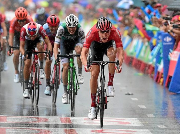 Añadía que «faltan dos semanas y me quedo con las buenas sensaciones para intentarlo otro día. Sabíamos que la fuga podía llegar, teníamos que estar ahí y la hemos cogido. Iba bien, pero el final ha sido un caos con los ataques y con la lluvia que cayó. En la bajada iban tres adelante y los he cogido y luego he intentado ir adelante. Al final nos hemos reagrupado y era jugársela al sprint, en el que no sabía por donde salir». J.I.