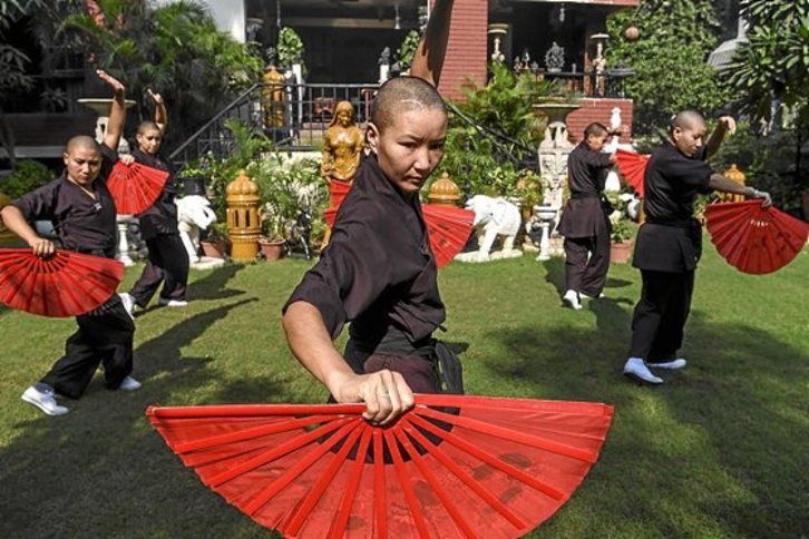 «En el Himalaya, las chicas no son tratadas en condiciones de igualdad», explica Jigme Konchok Lhamo, de 25 años. «El kung-fu nos ha ayudado (…), nos sentimos más seguras, más fuertes física y mentalmente», añade. Las monjas pertenecen a un monasterio de la montaña Amitabha de Nepal (800 integrantes), afiliado a la escuela Drukpa de Budismo Tibetano. En 2008, en el marco de su misión para fomentar la igualdad en el budismo, el líder espiritual Su Santidad Gyalwang Drukpa las animó a aprender kung-fu y oponerse a las normas tradicionales que prohíben que chicas y mujeres salgan de los límites de los monasterios, dirigir oraciones o ser ordenadas completamente. Animadas por su destreza en el combate, viajan por el sur de Asia para impartir clases de autodefensa y promover la concienciación sobre el tráfico de seres humanos en una región donde pocas veces se informa de los casos de violencia contra las mujeres. También visitan colegios, donde, explica Lahmo, «colocan a las chicas delante y a los chicos detrás». Algo cambia.