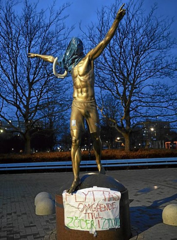 El pasado 8 de octubre Zlatan Ibrahimovic, amado y odiado por partes iguales, inauguró una estatua en su honor, situada en su ciudad natal, Malmö (Suecia). El momumento, de casi 3 metros y unos 500 kilos de peso, muestra al jugador en uno de sus típicos gestos de celebración de un gol. La base incorpora una inscripción con todos los títulos logrados por el delantero, quien a los 38 años es el máximo goleador de la historia de la selección sueca y ha sido una de las sensaciones de la MLS estadounidense antes de anunciar que en enero dejará Los Angeles Galaxy para seguramente volver a Europa. Sin embargo, su estatua parece no haber gustado a todo el mundo. Desde su inauguración ya ha sufrido varios actos vandálicos, como cuando aparecieron pintadas racistas junto a la estatua, se cubrió su cabeza con bolsas de plástico y dejaron una pancarta sugeriendo que fuese trasladada a Söder, el barrio del Hammarby en Estocolmo, como se aprecia en la imagen que acompaña a estas líneas. El último acto vandálico se produjo este fin de semana, cuando el domingo el momumento amaneció con la nariz y un dedo de un pie seccionados, aparentemente con una sierra. Todas estas hostilidades hacia Ibrahimovic se deben a que el futbolista se ha convertido en copropietario del Hammarby, club de la capital, cuando él se formó y jugó en Malmö. ¿Cómo se tomará todo este asunto este controvertido jugador?