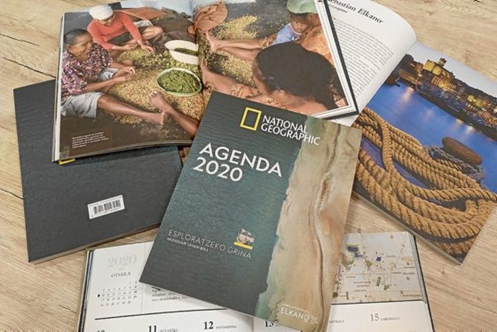 La revista “National Geographic” se publica desde 1888 y tiene seis millones de suscriptores en todo el mundo (la mitad en Estados Unidos). Por primera vez ha publicado ahora una agenda en euskara, para el año 2020, si bien a iniciativa de la Fundación Elkano 500 y con apoyo de la Diputación de Gipuzkoa. La tirada en euskara ha sido de 5.000 ejemplares y, desde ayer, está a la venta en quioscos y librerías. Elkano 500 explicó que esta agenda es uno de los resultados del trabajo que lleva a cabo con el propósito de «difundir y dar a conocer la historia». En este caso se ha apoyado en “National Geographic”, «entidad cuyas características principales –rigor científico y difusión– están alineadas con los objetivos de la Fundación», manifestó. La agenda contiene 160 páginas y presenta «los entresijos y vicisitudes que afrontó la tripulación de un viaje que transformó la forma de ver el mundo». La Fundación Elkano 500 añade que «en las naos que hace 500 años partieron hacia las Islas de las Especias se hablaba, entre otras lenguas, en euskera».