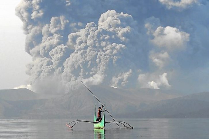 Los efectos de la erupción del volcán Taal, que ya escupe lava, han llegado a la capital de Filipinas, Manila, cubierta por un halo de ceniza y humo tóxico que ha paralizado el frenético ritmo y congestionado el tráfico de la ciudad, a unos 60 kilómetros al norte. En torno a 25.000 personas han sido ya evacuadas, la mayoría en la provincia de Batangas. De ellas, unas 2.000 viven en las laderas del propio volcán, que forma una isla que emerge de las aguas de un lago con el mismo nombre, Taal. Son comunidades pobres que viven de la ganadería y la pesca. El artículo más buscado en las tiendas es un modelo de mascarilla con filtro recomendado por las autoridades. Es ya difícil de encontrar, y algunos comerciantes están especulando con su precio, ante lo cual el Gobierno ha amenazado con «cargos administrativos y criminales». Desde el año 1572 se han contabilizado 33 erupciones de este volcán, uno de los más pequeños del mundo. En 1911 murieron alrededor de 1.300 personas, mientras que dos centenares perdieron la vida en 1965.