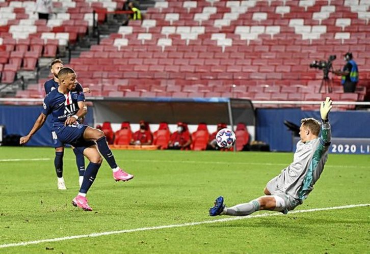 Curiosamente, cuando mejor se veía al equipo parisino, llegaron la mejor ocasión del Bayern y una acción en principio desafortunada que acabó saliéndole bien. Primero fue el remate de Lewandowski a la media vuelta, que se estrelló en la base del poste. Y casi de inmediato, la marcha de Boateng, que ya se había retirado de la semifinal con problemas musculares y ayer no aguantó ni media hora. Le sustituyó Süle y, casualidad o no, su equipo estuvo mejor. Conforme se acercó el descanso, el Bayern volvió a dar un paso adelante, con ocasión de Lewandowski y paradón de Keylor incluídos, pero también ahora los «uys» se escucharon más fuerte en la portería rival: con un remate de Di Maria y, sobre todo, con la gran ocasión que desperdició Mbappé rematando sin fuerza a las manos de Neuer.