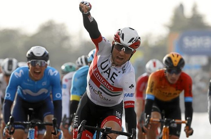 Diego Ulissi (UAE) logró ayer su segunda victoria en esta edición y su octava en el Giro en la decimotercera etapa entre Cervia y Moselice, de 192 kilómetros, al imponerse en el sprint de un grupo de veinte corredores con todos los favoritos. El italiano se aprovechó del trabajo del Deceuninck, que impidió que Peter Sagan y Arnaud Démare pudieran entrar en la pelea por la victoria. Joao Almeida, segundo, reforzó el liderato al lograr seis segundos de bonificación y Pello Bilbao sigue tercero a 49 segundos ante la crono de hoy que los dos querrán aprovechar.