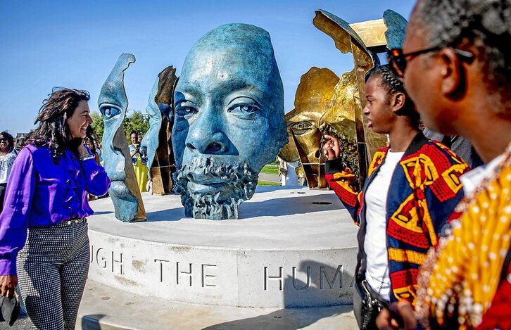 Ez dago motibo berezirik, ez urteurrenik; ezta beharrik ere: Amsterdameko Udalak Zuidoost auzoaren «harrotasun eta pertseberantzia» goratu nahi zituen eta Nelson Mandela Park-en monumentu berria inauguratu du. Buruzagi hegoafrikarraren esaldi bat hartu du ardatz horretarako Mohau Modikaseng artistak: «Besteen gizatasunaren bitartez gara gizaki».