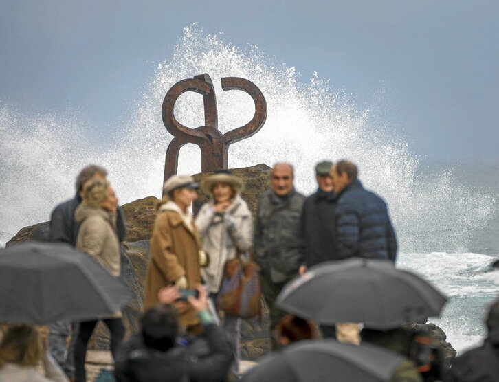 Denborale betean jaio zen Eduardo Chillida. Ilusioz kontatzen zuen ekaitz handi baten erdian iritsi zela, eta egun hartan hainbat ontzi hondoratu zirela badian. Donostiar sortzailearen mendeurrena ere ekaitz giroan etorri da. Chillidaren ametsa izan zen hain kuttuna zuen txokoan altzairuzko hiru eskulturaz osatutako obra jartzea. Bere oinordekoak -8 seme-alaba eta 27 biloba ditu- hantxe bildu ziren atzo, artista jaio zenetik ehun urte bete ziren egunean. Harro erakusten du bere haserrea Kantauri itsasoak tarteka, eta haizea orrazten jarraitzen dute eskulturek, 1977tik egin duten moduan.