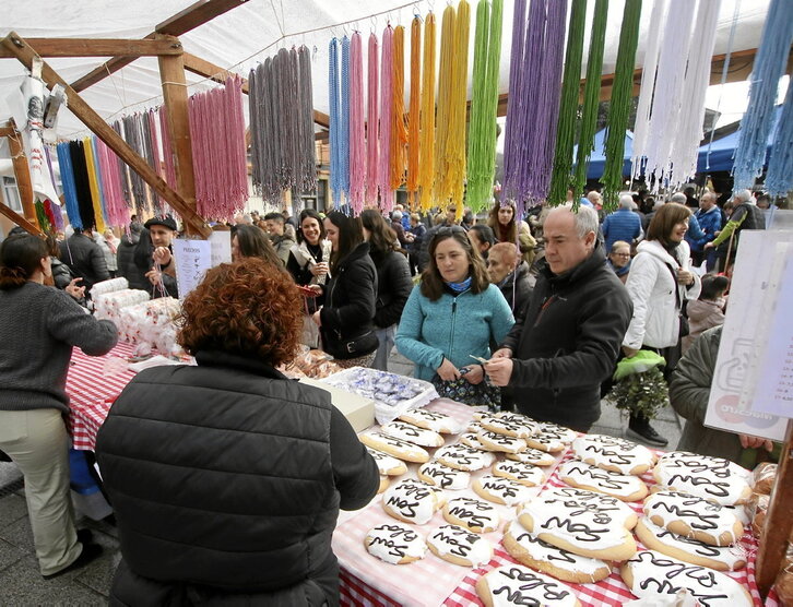 Miles de personas cumplieron con la tradición y acudieron a Abadiño a disfrutar de su feria de San Blas, donde dulces y cordones volvieron a ser los productos estrella, aunque hubo una amplia oferta en los 130 puestos. La muestra ganadera reunió a compradores y meros visitantes, que disfrutaron observando a las 180 cabezas presentes, especialmente bovino y ovino, acompañando a caballos, burros y aves. La jornada soleada ayudó a realzar una de las citas ineludibles en el calendario festivo de Euskal Herria.