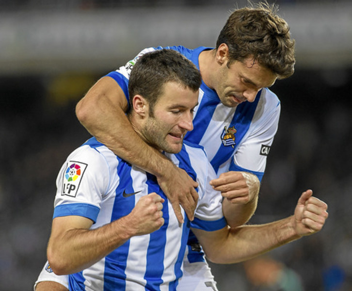 En esa faceta aportó por fin Imanol Agirretxe. Aunque se perdió por lesión los primeros partidos y Arrasate no solo le ha alternado con Seferovic, también ha jugado Vela en punta, no es normal que un delantero que marcó catorce goles la pasada temporada no se estrenara cuando su equipo lleva ya 25 encuentros oficiales. Lo más difícil es romper la racha y el usurbildarra lo hizo en su primera ocasión, en un gran vaselina con su pierna menos buena, con la que marcó los dos goles, tras la primera de las tres asistencias que dio ayer un gran Rubén Pardo.