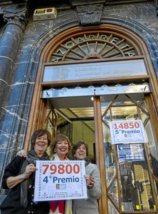 Aparte del Gordo de Arrasate, el sorteo de la Lotería de Navidad dejó más dinero y más historias en Euskal Herria. Se repartieron premios cuantiosos en Bilbo, Leioa, Getxo, Santurtzi, Gasteiz, Agurain, Iruñea y Noain.