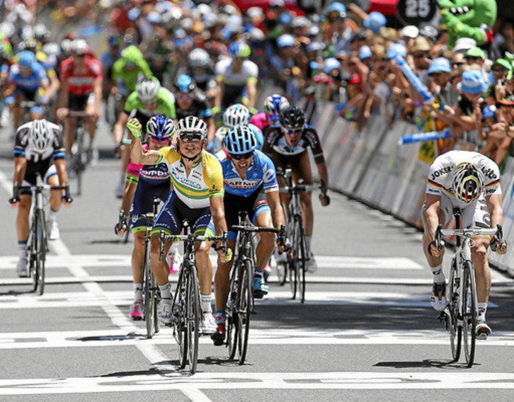 El corredor alemán fue uno de los primeros en lanzarse a por el triunfo después de que una caída redujera el grupo cabecero, pero el australiano fue más veloz.