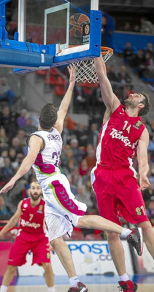 La ausencia de San Emeterio y Adam Hanga debilitaba el puesto de alero entre los locales. Por si eso fuera poco, uno de los árbitros serbios de la contienda, Jovcic, daba un bonito revolcón al partido en pleno primer cuarto, con 12-8 para el Laboral Kutxa Baskonia, tras pitar sendas técnicas a Nocioni y Scariolo. El resto lo hizo Spanoulis.