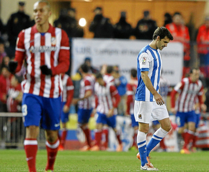 El partido acabó ahí y la Real se fue de él. Sin tiempo para reponerse del golpe Miranda marcó el tercer gol al superar a Gaztañaga a la salida de un corner botado por Koke y en esa misma zona entró a rematar Raúl García en otro saque de esquina enviado por el centrocampista atlético de más calidad.