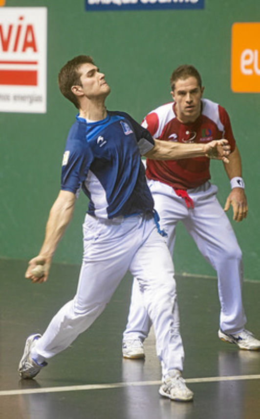 Sin haber pasado demasiado tiempo ante la calculadora, la pareja navarra de Aspe se aferró al orgullo, las matemáticas y a la labor de equipo ante un partido que puede ser definitivo este sábado. «Yo por lo menos no me he rendido, Joseba no sé. Nosotros lo que tenemos que hacer es ganar nuestros partidos y luego que pase lo que tenga que pasar. Tenemos pocas opciones pero todavía quedan y para ello tenemos que ganar nuestros tres partidos y luego que nos favorezcan los resultados, que Irujo y Olaizola ganen todos sus partidos», señaló el zaguero de Etxarren ayer en el Labrit.