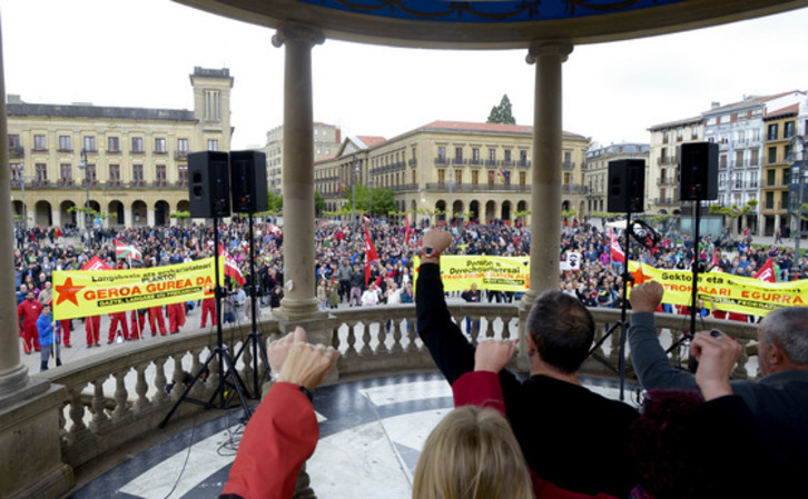 Ainhoa Etxaide, secretaria general de LAB, consideró esencial en la Plaza Nueva de Bilbo hacer frente «al contexto brutal de paro, emergencia social y pobreza con medidas de protección social» que, sin embargo, «no se adoptan, y que dejan a los jóvenes, a las mujeres y a los pensionistas sin futuro para tener una vida digna». Para la secretaria general de LAB, «no es un problema económico. Euskal Herria tiene riqueza y recursos suficientes para garantizar los derechos sociales que nos corresponden a todas y todos».