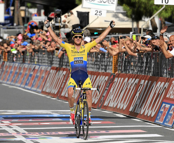 El equipo de la maglia rosa marcó el ritmo del pelotón en la ascensión del último puerto de la jornada, en el que ningún sprinter pudo aguantar con los hombres fuertes de la carrera. En el descenso atacó Rogers y el triple campeón mundial contrarreloj vivió su crono más emotiva en el momento más oportuno. Hace menos de un mes estaba suspendido por su positivo de clembuterol en la Japan Cup que ganó al final de la pasada temporada, temía por una sanción que hubiera puesto final a su carrera y ayer ganó su primera etapa en una grande.