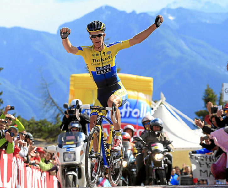 En la primera mitad del puerto fue Igor Antón, ganador en la meta de Zoncolan hace tres años con el maillot naranja del Euskaltel, el que se encargó de marcar el ritmo. El vizcaino se mostró pletórico y quitó las ganas de atacar a los aspirantes, comenzando por el propio Fabio Aru, que bastante tenía con no descolgarse del reducidísimo grupo de favoritos.