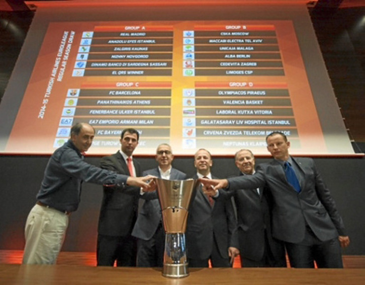 El Laboral Kutxa quedó encuadrado en un Grupo D «muy igualado» -según el capitán Fernando San Emeterio y el director deportivo Félix Fernández- junto a Olympiacos, Valencia Basket, Galatasaray, Estrella Roja de Belgrado y el desconocido Neptunas Klaipeda de Lituania.