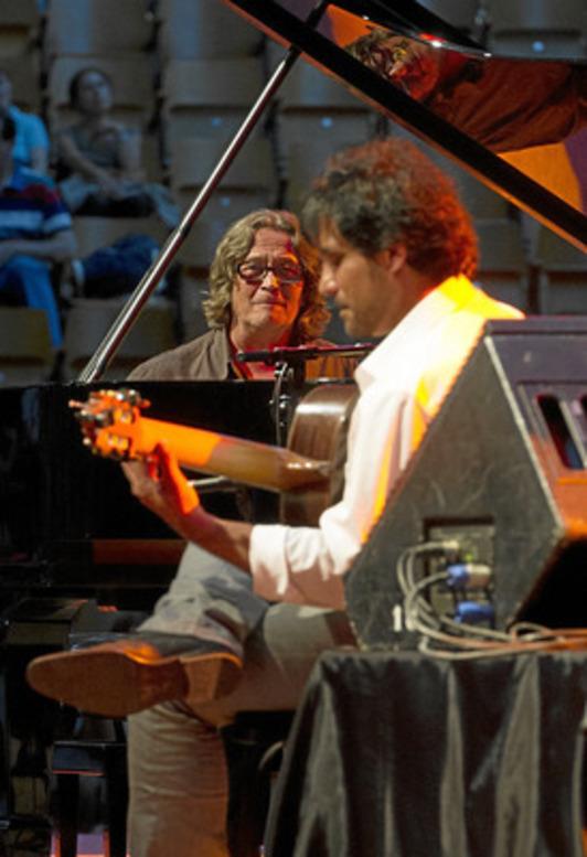 Puntual a la cita, el telón se abrió con un Niño Josele a solas, por Colombianas y que tanto nos recordó al maestro de Algeciras. Con Chano en el escenario, empezaron a proponernos temas de la nueva andadura juntos: «Chano & Josele»: Dos mundos, un mismo universo, un mismo lenguaje. La suerte que tuvimos los allí presente de ser los primeros en disfrutar el primer bolo de su nueva gira. De la simpleza, para así formar un todo, una mezcla perfecta para decir que lo simple es hermoso. Desde el «Because» de Lennon y Mc Carthney, al «Django» de John Lewis. Del «Luiza» de Antonio Carlos Jobim, al «Lua Branca» de Chiquinha Gonzaga» y del »Olha Maria» de Vinicius de Moraes y Chico Buarque, al «Two for the road» de H. Manchini. Todo un lujo de infinitas propuestas, donde ya de por sí, tanto Chano, como Josele, dan un discurso propio, una versión misma de los hechos. Porque sólo los grandes son capaces de montar una como la que montaron este pasado Martes en el Festival vitoriano y en un mismo trabajo discográfico: Coplas, boleros, Jazz, Flamenco, música brasileira... Y todo lo que le echen. Porque para eso están estos dos monstruos, para tocar todo lo inimaginable. Dejándose caer en cada silencio, respetando las cadencias, cuando lo difícil se ofrece como si tal cosa. Vital. Casi como beber agua. Porque con Chano sobra la parte percutiva. Ël lo hace todo en uno, lo cubría con sus teclas llena de compás. Al igual que la suavidad en el traste del almeriense, que nos acercaba a un flamenco-Jazz-Tántrico. Dónde el menos, es más. Había que recordar que allí estábamos también por Paco de Lucía y de su homenaje, pero Josele, inteligentemente, no quiso tomar esa responsabilidad de tomar ningún legado y así caer en la facilidad de ser comparado. Supieron conjugar el piano con el trasteo de Paco. Ya en la parte final, por aclamo, hicieron dos temas de Paco como sólo ellos saben hacerlo: «Canción de amor» y «Zyryab». Dos obras de arquitectura del alma que nos dieron a entender que en cuestión de melodías el de Algeciras sólo había uno, y solo uno. Respetando absolutamente a la grandeza de estas composiciones y a su espíritu. Al menos, al final, el respetable despidió a los músicos con palmas al compás, para que luego digan que en Euskal Herria no tenemos eso... compás.