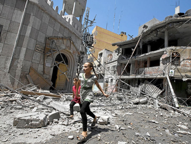 Durante la jornada de ayer las bombas israelíes siguieron cayendo sobre Gaza y mataron a medio centenar de personas, en un balance que no para de aumentar. Ya eran 693 el total de víctimas mortales, la mayoría civiles y una cuarta parte niños, además de más de 4.500 heridos. La aviación israelí bombardeó también ayer el hospital de Al Wafa, situado en el este de ciudad de Gaza y la ayuda médica de emergencia se vio amenazada porque la única planta que genera electricidad para parte de los gazatíes detuvo su actividad tras ser atacada por blindados israelíes. En el bando israelí, tres soldados israelíes murieron en combates con milicianos palestinos, con lo que ya son 32 los soldados muertos, además de tres civiles. El secretario de Estado de EEUU, John Kerry, afirmó que «hemos hecho progresos en estas últimas 24 horas» para negociar un alto el fuego, tras encontrarse sucesivamente con el secretario general de la ONU, Ban Ki-Moon, en Jerusale´n, el presidente de la Autoridad Palestina, Mahmud Abbas, en Ramala, y el primer ministro isaelí, Benjamin Netanyahu, en Tel-Aviv, de donde volvió a El Cairo. Netanyahu, por su parte, reunió por la noche a su gabinete de seguridad.
