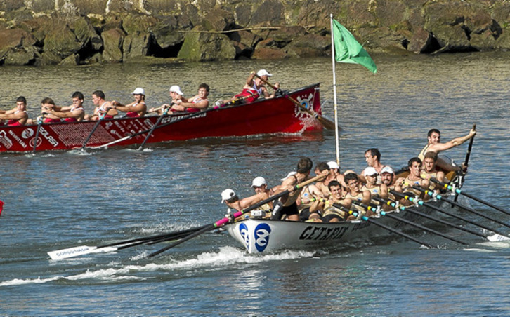 La tanda de honor de la regata de Ondarroa se convirtió en un doble cara a cara desde la primera ciaboga. Isuntza y Getaria empezaron a destacarse a partir del segundo largo, mientras que la embarcación local de Ondarroa y la «Telmo Deun» se enzarzaban en un duelo cuerpo a cuerpo por la tercera plaza, en pos de sus correspondientes 10 puntos, que no es moco de pavo a estas alturas de Liga.