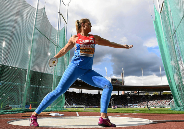 La croata Sandra Perkovic, por su parte, fue la estrella de la tarde. La lanzadora de disco dálmata era la principal candidata a ganar el oro en la final de su disciplina, y ya desde el primer lanzamiento puso tierra de por medio, mientras que sus rivales se peleaban por la plata. No obstante, la forzuda balcánica, espoleada por un público al que supo activar, fue mejorando a cada lanzamiento, hasta el punto de superarse a sí misma y establecer el nuevo récord de su país -y mejor marca mundial del año- con 71,08 metros. La medalla de plata fue para la francesa Mélina Robert-Michon, a más de cinco metros de la vencedora, mientras que la alemana Shanice Craft, con casi siete metros menos que la triunfadora, conquistaba el bronce.