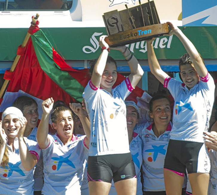 Una vez cruzada la meta, estallaron los abrazos y las lágrimas de emoción entre las pasaitarras, que acudieron en tropel -fue un espectáculo ver a 17 remeras en el bote- para recibir su premio de campeonas.