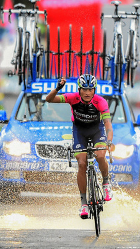 La etapa de ayer tuvo dos peleas. La de la general y la de la etapa, que se decidió entre los integrantes de una fuga numerosa en la que el más fuerte fue el colombiano Winner Anacona, que llegó en solitario a Valdelinares por delante de Lutsenko, su compañero Cunego, Javi Moreno y Pello Bilbao, que logró un meritorio quinto puesto.