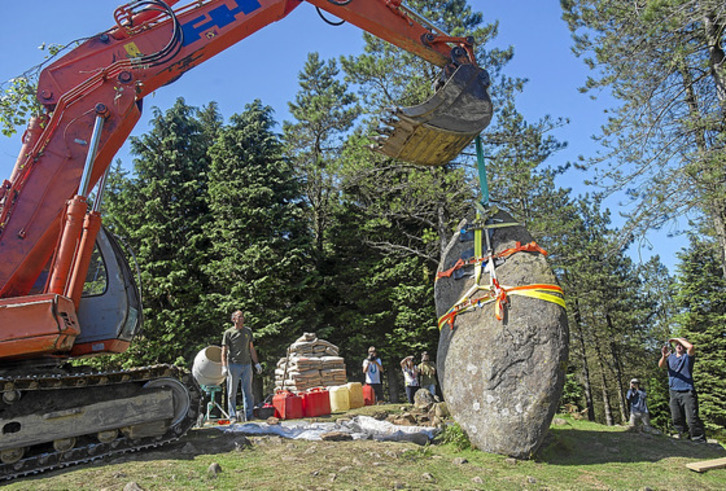 Ustez dolmena zena menhirra dela ziurtatu eta gero, Arribiribilletako monumentu megalitikoa bere jatorrizko posizioan jarri zuten atzo