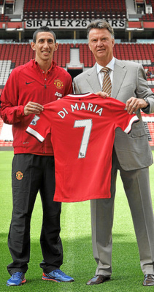 El técnico holandés se había gastado hasta el domingo 188 millones de euros en nuevos jugadores, incluidos los últimos 17 por su compatriota del Ajax Daley Blind. Su once titular el fin de semana fue el formado por: De Gea, Jones, Evans, Blackett, Valencia, Young, Fletcher, Di Maria, Mata, Rooney y Van Persie. Insistió en su defensa de tres -Evans-Jones-Blackett- que, como alguien sugirió al verla, es como poner a Van Damme y Sofía Vergara a protagonizar ``Los puentes de Madison''.