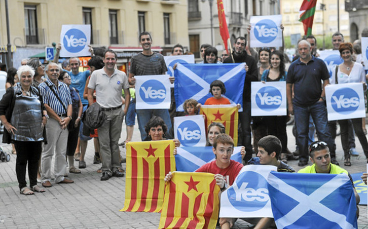 En Iruñea, en el Paseo de Sarasate, se produjo incluso una degustación de productos escoceses. Y en Bilbo, en la Plaza del Arriaga, el parlamentario de EH Bildu Oskar Matute intervino para poner de manifiesto que, al margen del resultado, Escocia supone ya un hito por la materialización del derecho a decidir de modo libre y democrático. GARA