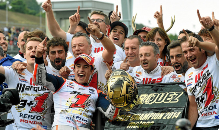 Con 21 años y 237 días, Marc Márquez es el piloto más joven de la historia en encadenar dos entorchados mundiales en la categoría reina. Después de ganar las 10 primeras carreras de forma consecutiva, el piloto de Cervera ha sabido administrar su renta, mientras un trío del nivel de Pedrosa -su compañero de escudería-, Rossi y Jorge Lorenzo no han podido hacer nada más que pelear por la segunda plaza, una pelea que se apretaba aún más tras el triunfo de Lorenzo en Motegi.