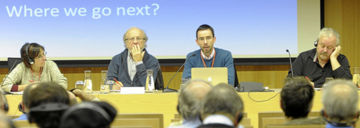 Los momentos políticos de sus países y sus propios grados de avance son diferentes, pero Yes Scotland, ANC y Gure Esku Dago tienen muchas cosas en común. Entre otras cosas, porque los procesos soberanistas en Europa van aprendiendo unos de otros. Ayer cruzaron sus voces en Donostia, en la primera mesa redonda de tres días de debate sobre el derecho a decidir organizados por Eusko Ikaskuntza y todas las universidades vascas. Stephen Noon, estratega de Yes Scotland, se presentó todavía deprimido por el resultado final, pero pronto demostró que era el que más tenía que enseñar porque es el que más lejos ha llegado. Le siguió Pere Pugès, de ANC, igualmente con varias lecciones en el zurrón y una organización poderosa detrás. Y acabó Zelai Nikolas, de Gure Esku Dago; lo nuestro va más lento, pero va.
