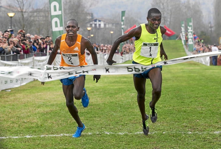Fue por menos que un suspiro, pero un cerradísimo sprint le sirvió al ugandés Timothy Toroitich para sacar partido a todo el trabajo realizado durante más de diez kilómetros, sacarse la espina de su segundo puesto el año pasado en las campas de Jauregibarria y obtener un triunfo de prestigio tras sus éxitos en Soria, Alcobendas y Venta de Baños. Su compatriota Moses Kipsiro, el único que aguantó su ritmo durante toda la carrera, confió sus opciones a un último sprint, de los de foto-finish, en el que no pudo birlarle el triunfo al que más se lo había merecido. Justicia poética, que le llaman algunos.