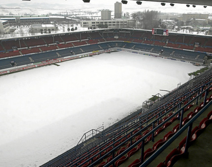 Osasuna y Zaragoza disputan hoy un tradicional partido de rivalidad en busca de la zona de promoción de ascenso, un encuentro que puede estar condicionado por el estado del césped de El Sadar debido a la intensa lluvia caída ayer en Iruñea y las previsiones de nieve para hoy desde esta pasada madrugada. Según las estimaciones de la Agencia Estatal de Meteorología (AEMET) para este mediodía en Iruñea se puede acumular nieve por una altura de entre 5 y 8 centímetros. Con lo que la posibilidad de que se dispute o no el partido estará en manos de los operarios de Osasuna y de la decisión final del árbitro.
