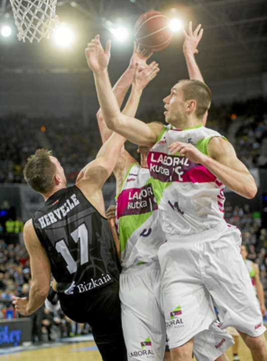 No estaban los hombres de negro para perdonar a sus vecinos. Hervelle y Dairis Bertans, otro de los más destacados, apuntillaron a Laboral Kutxa Baskonia y elevando su renta por encima de los 20 puntos: un 71-49 que convertía los ocho minutos finales en deleite local, como el que tuvo la gente con los dos matazos de Williams en la cara de San Emeterio.