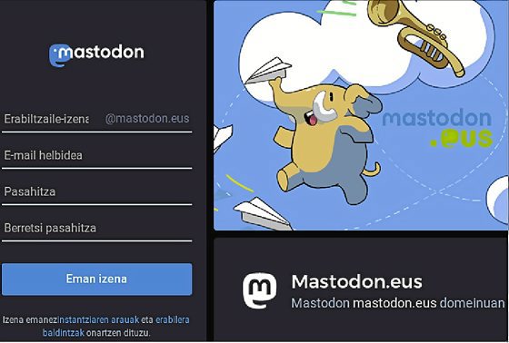 Asteon bertan aurkeztu dute Mastodon.eus, Mastodon sare sozialaren baitan sortutako instantzia, «euskaraz mundura salto egiteko». Milaka instantziarekin federatuta, guzti-guztiekin komunikatzeko aukera dago, eta erabiltzaileek beraiek erabakitzen dute beren datuen erabileraren gainean.