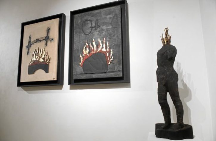 Atzo, San Joan gaua baino bost egun lehenago, Koldobika Jauregiren eta Elena Carajavilleren lanez osatutako erakusketa zabaldu zuten Donostiako Ekain Arte Lanak galerian: Sua. «Hura asmakizuna/ homo habilisena». Natura elementu horren bi alderdiak bildu dituzte artistek beren obra horietan: Su purifikatzailea, birsortzeko eta susmo txarrak uxatzeko, eta suntsitzailea, basati eta txikitzailea. «Bi harrik elkar jota/ txispa bat aurrena/ Asmakizun haundina/ mendetan barrena». Laratzeko sua, erakargarri eta babeslea, eta liburu erretzailea. «Sua da problema/ zenbait basorena/ edo jaki dena/ berotzen duena». Aurten, San Joan suak, pizten dituzten lekuetan, kontrol handiaren pean izango dira, jende kopuru mugatu batentzat. Horren aurretik eta ondoren ere, ordea, suak iradokitzen duen guztiaz gogoeta egiteko leku aproposa izango da Ekain galeria, bertsolariak «bi begiradek sortzen dutena» deskribatu zigun egunean bezala. Xabier Izaga Gonzalez