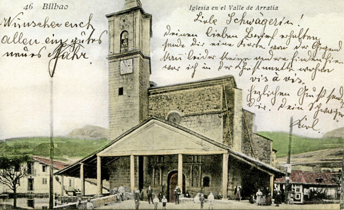 XX. mendearen hasieratik 1950eko hamarkadara arte editatutako posta txartelak aurkeztuko dira. Zaharrenak 1906. urtea baino lehenagoko bi dira. Batean Areatzako eliza ageri da eta bestean, Igorrekoa, biak koloretan. Aurrealdean Areatzakoak “46 Bilbao - Iglesia de Arratia” izenburua dauka, eta Igorrekoak, “47 Bilbao - Iglesia de Amatia”, inprimatze akats eta guzti. Posta txartel biok Bilboko Librería Villar liburu dendak editatu zituen, 52 alez osatutako serie batean. Areatzakoa 1907ko abenduaren 27an Munichera bidali zuten. Aurrealdean alemanez idatzitako testua dago, suhi batek bere amaginarrebari bidalitako mezua, urte berri ona opatzeko, besteak beste.