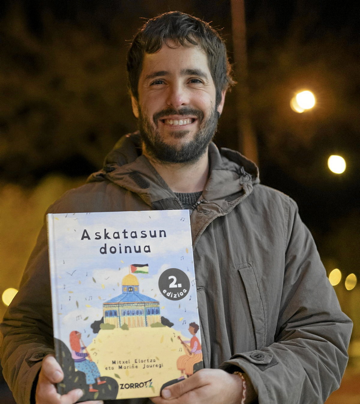 Irakasle lanetan ari den ikastetxearen parean topatu dugu Mitxel Elortza Exea, Gasteizko Zabalgana auzoan. Irakaslea ez ezik, bertako guraso ere bada. “Askatasun doinua” ipuin argitaratu berriaren inguruan hitz egin digu, baita hura sortu zen testuinguruaz eta Palestinako genozidioaz ere.