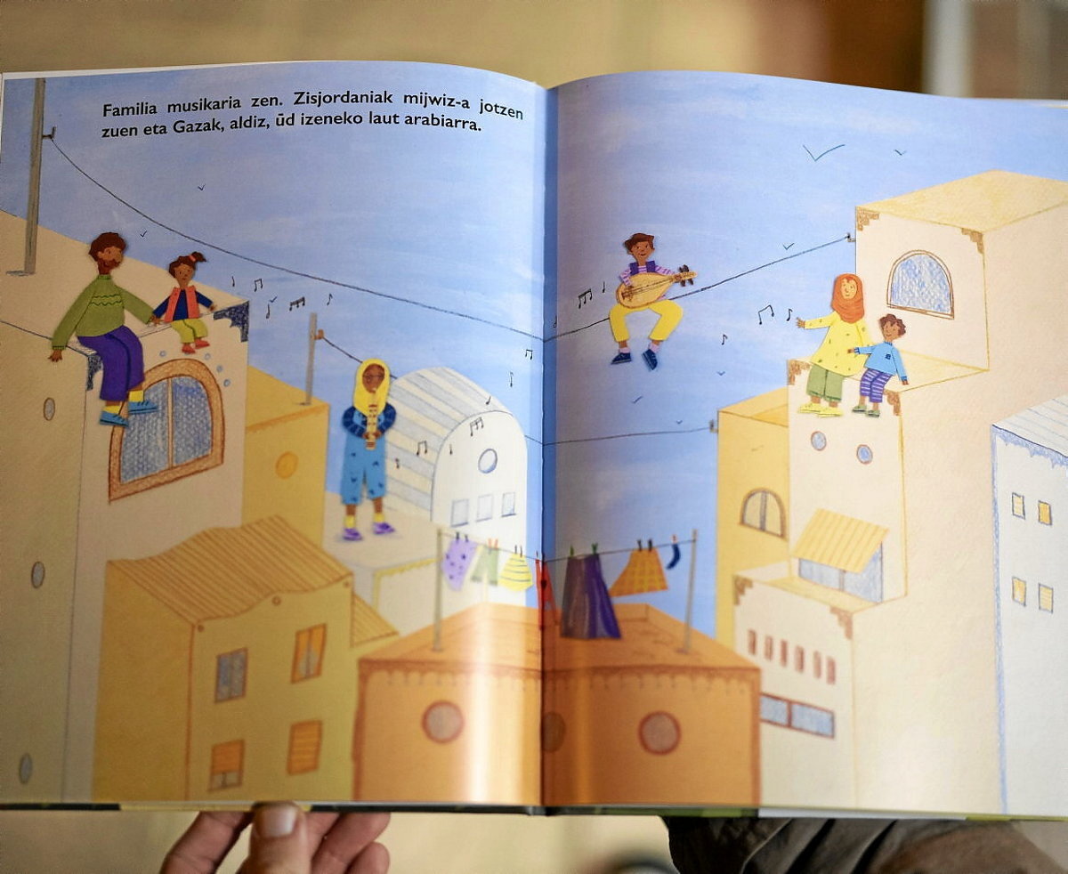 Musika nire pasioa da, eta orain idaztea ere bai. Aurkezpenean, kontakizunaren ondoren, Mariñek bideo bat egin zuen umeek ikusteko Gaza eta Zisjordania pertsonaien sorkuntza prozesua, testurik gabe eta nik musikaz lagunduta. Amaitzeko, tailertxo bat egin genuen, haurrek Gaza eta Zisjordania etxera eramateko: paperean margotutako pertsonaiak eta arropak moztu eta, txikitan ebakigarriekin egiten genuen bezala, jantzi egin zituzten, umeek uler zezaten sortze prozesua.
