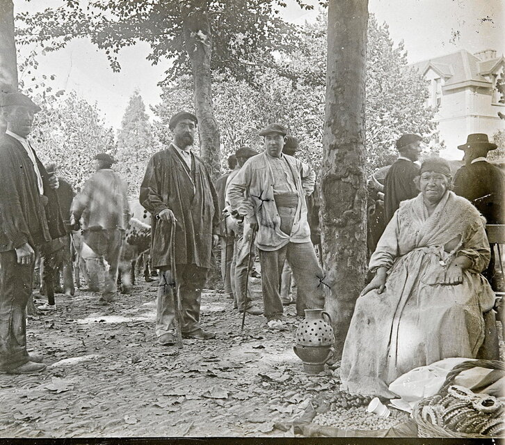 Gaztaina erreen salmenta eguneroko eszena izan da betidanik Euskal Herriko herri eta hirietako kaleetan. Gaztaina, sasoiko produktua, udazkenean biltzen da eta negua amaitu arte kontsumitzen da. Hotzaren hasiera markatzen duen urtaroko negozioa da haren salmenta. Bilbon, batez ere emakumeak ziren, ikatzezko suontziekin eta egunkari-paperezko kukurutxoekin, jende asko biltzen zen lekuetan jartzen zirenak, hala nola Areatzan, merkatuan, Alde Zaharrean eta inguruetan, non merkataritza ibiltaria ohikoa zen. Gaztainen eta saltzaileen kea eta usaina neguko paisaiaren parte ziren. Eulalia Abaitua Allende-Salazarrek 1905ean Begoñan hartutako irudi honetan, gaztaina saltzaile bat ikusten da ganadu feria batean. Bere ondoan, zuhaitz baten azpian, gaztainentzako zeramikazko txigorgailu bat agertzen da.